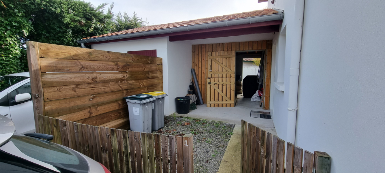 La maison bénéficie également d’un pièce à usage de garage ainsi que de stationnements devant la maison.