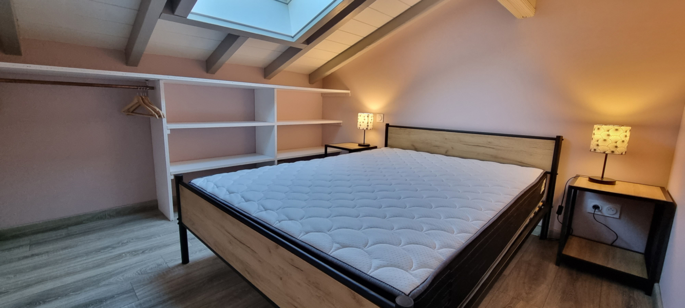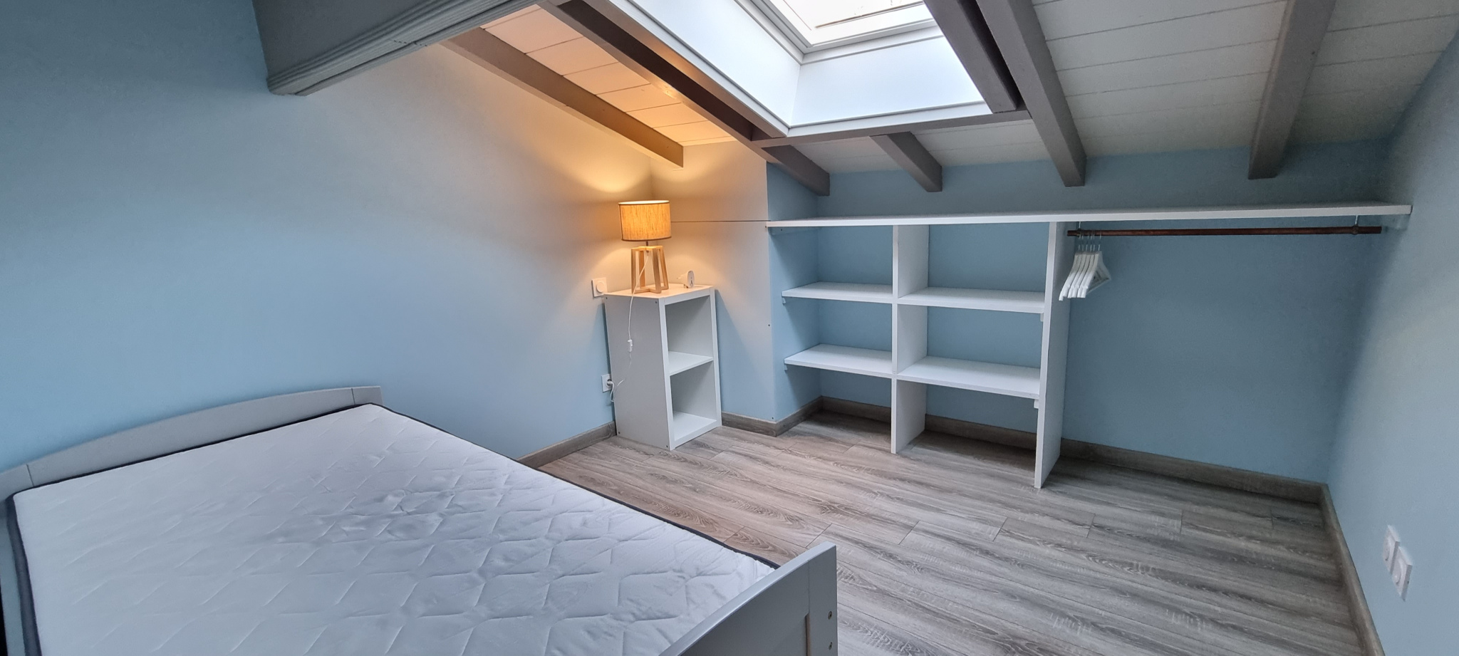A l’étage une mezzanine dessert deux autres chambres avec dressings.