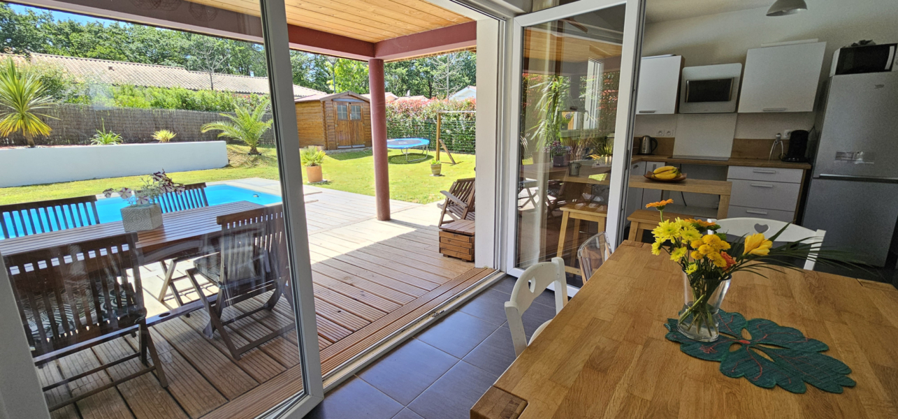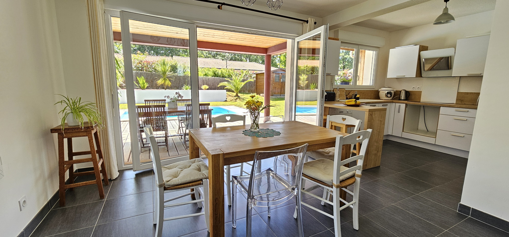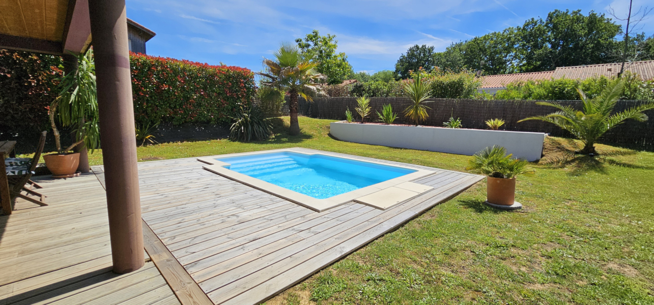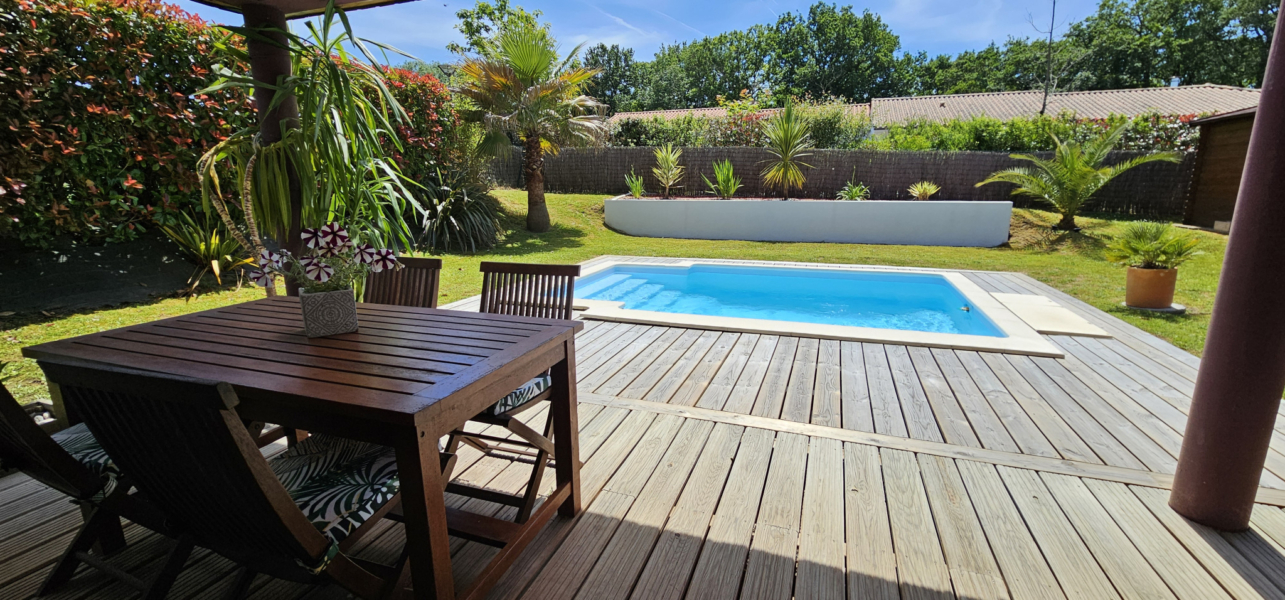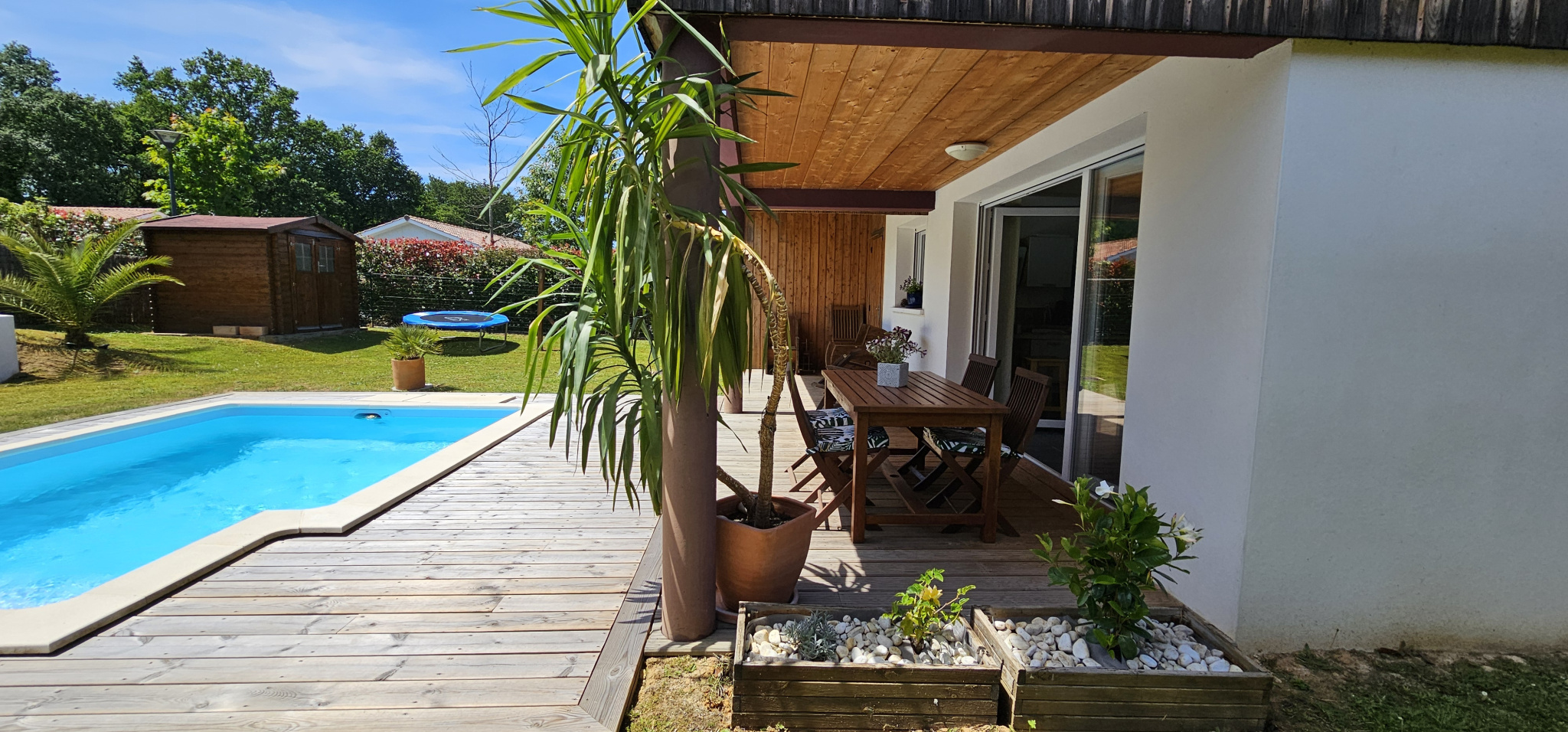 Administrateurs de biens immobiliers, nous proposons à la location une magnifique maison récente avec piscine de 85 m2 environ à SAINT LAURENT DE GOSSE, disponible mi-juillet.
