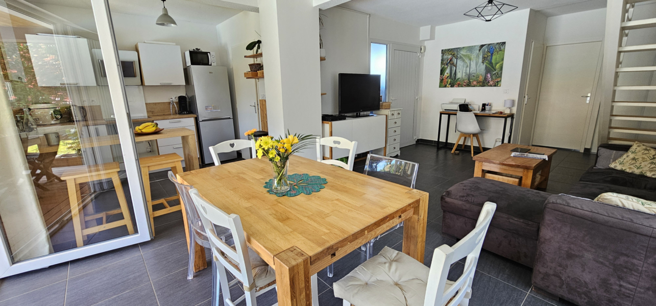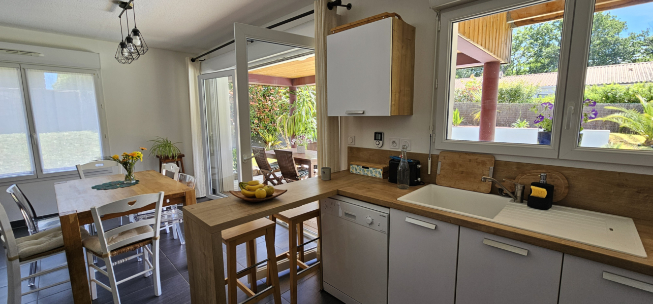 Cette magnifique maison individuelle de type 4 meublée à l’année est située au calme d’un adorable quartier récent situé à proximité du bourg et composé essentiellement de petites familles, les écoles étant accessibles à pied ou en bus pour le plus grand confort des petits comme des grands .