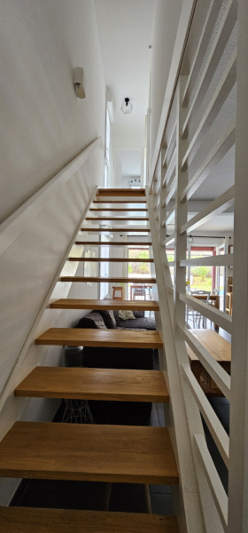 La pompe à chaleur permet un chauffage au sol très agréable comme très économique et les menuiseries sont bien sûr en double vitrage.
