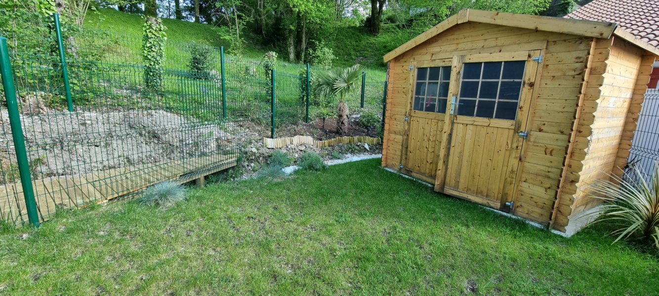 Elle se compose d’une entrée sur dégagement desservant un séjour avec cuisine aménagée et entièrement équipée donnant sur un jardin clos, un cellier et un W.C.