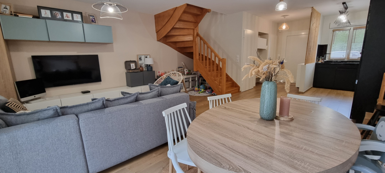 Administrateurs de biens immobiliers, nous proposons à la location une maison mitoyenne de 85 m2 environ à LAHONCE, disponible le 1er juin.