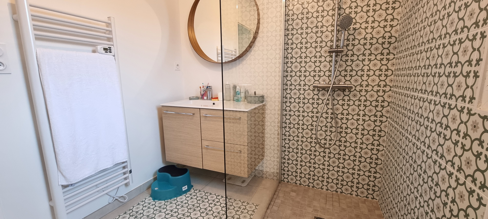 Le chauffage se fait via une climatisation réversible et la maison bénéficie du label RT 2012 offrant la certitude de bénéficier d’une très faible consommation d’énergie.